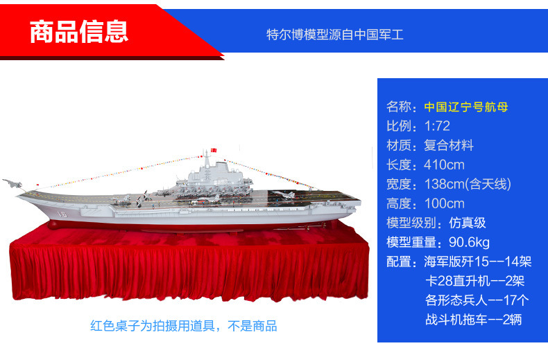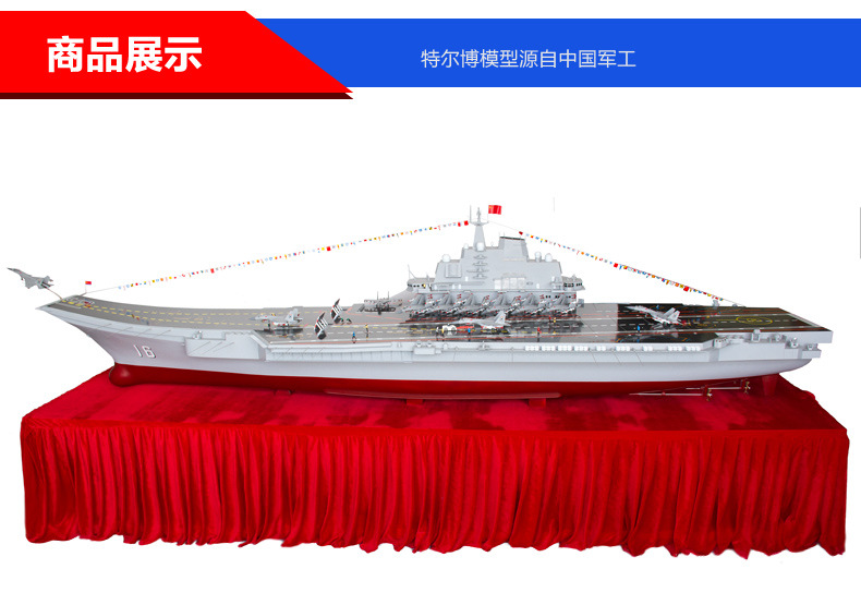 本款辽宁号航空母舰模型为静态复合材料模型,适合大型展览展会活动。本公司提供各种军事模型定制服务。欢迎前来咨询: 寇经理