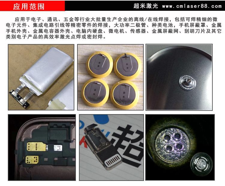 在电池行业、 IT行业、电子器件、光通讯行业、传感器行业、五金行业、汽车配件行业、模具修补行业、首饰焊接行业、眼镜行业、烤瓷牙、太阳能行业、电热行业获得广泛的应用。
