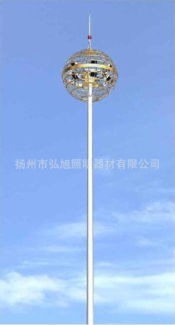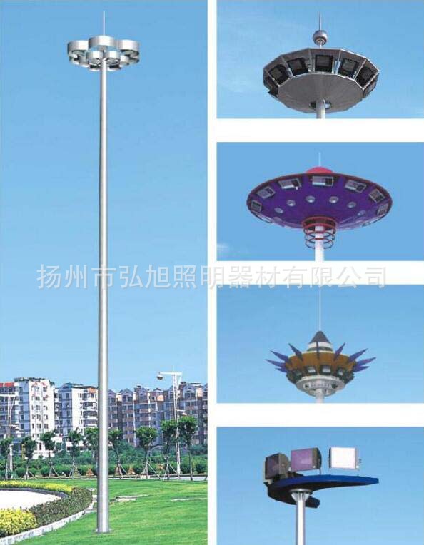 高杆灯一般指15米以上钢制锥形灯杆和大功率组合式灯架构成的新型照明装置。它由灯头、内部灯具电气、杆体及基础部分组成。灯头造型可根据用户要求、周围环境、照明需要具体而定;内部灯具多由泛光灯和投光灯组成,光源采用大功率LED灯具或者高压钠灯,照明半径达60米。杆体一般为棱锥形独体结构,用钢板卷制而成,高度为15—40米。